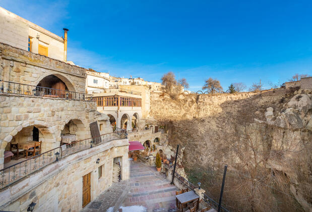 Toplamda 30 odasıyla, özgün Kapadokya mimarisinin modern konforla kucaklaştığı bu otel, mağara odaları ve taş işçiliği ile dikkat çekiyor. Otelin 22 mağara odası ve 8 sarı taştan inşa edilmiş her bir odası özenle tasarlanmış ve modern imkanlarla donatılmış. Yakınlarında Göreme Açıkhava Müzesi, Üç Güzeller gibi popüler noktaların yanı sıra, Balkan Vadisi gibi daha saklı cennetler de keşfedilmeyi bekliyor. Konuklarına Kapadokya'nın ruhunu yaşatan bu otel, eşsiz manzaralı teraslarıyla gün batımında unutulmaz anlar sunuyor. Tatil, konaklama ve keşif dolu bir Kapadokya deneyimi için Cappadocia Splendid Cave Hotel, misafirlerini bekliyor.