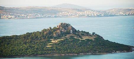 Günümüzden 70 yıl öncesine kadar psikoterapi merkezi ve çiftlik binalarının da bulunduğu Tımarhane Adası, Cunda Adası’na gidenlerin mutlaka uğramaları gereken bir doğa harikası yerdir. Adaya ismini veren Taşlı Manastır’ın kemerli pencereleri ve arkasındaki koridor manastırdan arta kalan bölümlerdir.