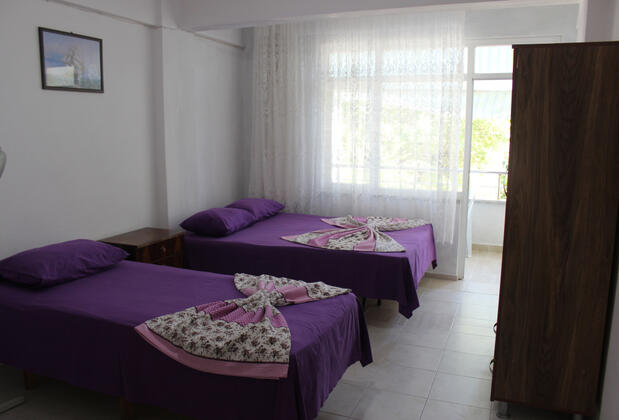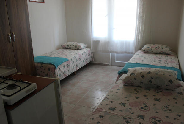 Aparttaki üç ayrı tek kişilik yatağın yer aldığı odalarda da rahatça konaklayabilirsiniz.