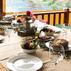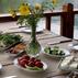 Turkuaz Köy restoran bölümü, ahşap iskelede doğa manzarasına nazır yemek yeme ayrıcalığı sunuyor. Apartın mutfağında hazırlanan yemeklerde, bahçede yetişen taze ve doğal ürünler kullanılıyor. Üstelik restoranda herkesin damak zevkine hitap eden lezzetler bulması mümkün. Finike Turkuaz Köy kahvaltı servisinde de yöresel yeşillikler ve en taze mahsuller misafirlere sunuluyor.