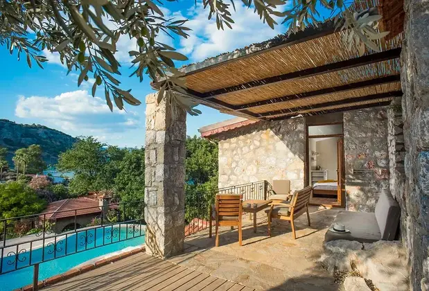 2010 yazında 4 oda kalmıştık burada. O zamandan beri bir türlü yorum yazma fırsatım olmadı. Aşırı keyifli, tam bir butik otel. Az odası. Güler yüzlü personeli. Mis gibi, temiz odaları. Ufacık kahvaltı yeriyle evinizdeymişsiniz hissi uyandırıyor. Sabah uyandığınızda yataktan kalkmadan denizi görüyorsunuz. Huzur verince nefis bir yer. Restorandı bana göre çok çok pahalı ama orada yemek zorunda değilsiniz. Sabahları oradaki teyzenin yaptığı sıcacık pişiler her şey dahil otelin açık büfesine değişilmez. Ne aradığınıza bağlı. Temiz, güler yüz, süper deniz, nezih bir mekansa kesinlikle tercih edilmeli. Biz de tavsiye üzerine gitmiştik. İyi ki tavsiye etmişler. 12 kişi de çok memnun kalarak ayrıldık otelden.