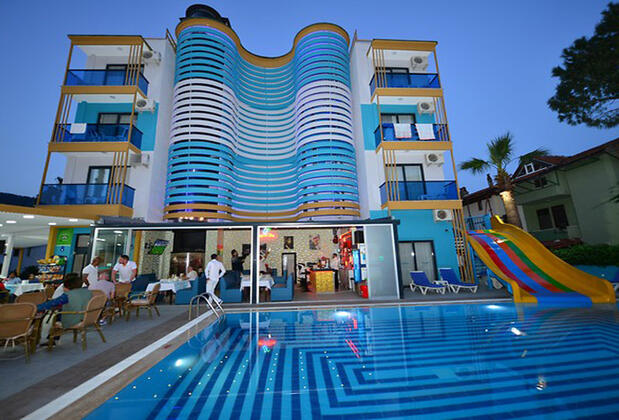Marmaris ve çevresi için iyi ve güzel bir yer. Personel oldukça ilgili, çok kapsamlı, kaydırak muhteşemdi. Gayet iyi eğlendik. Temiz ve güzel bir otel. Kesin tercih edilir bir mekan...